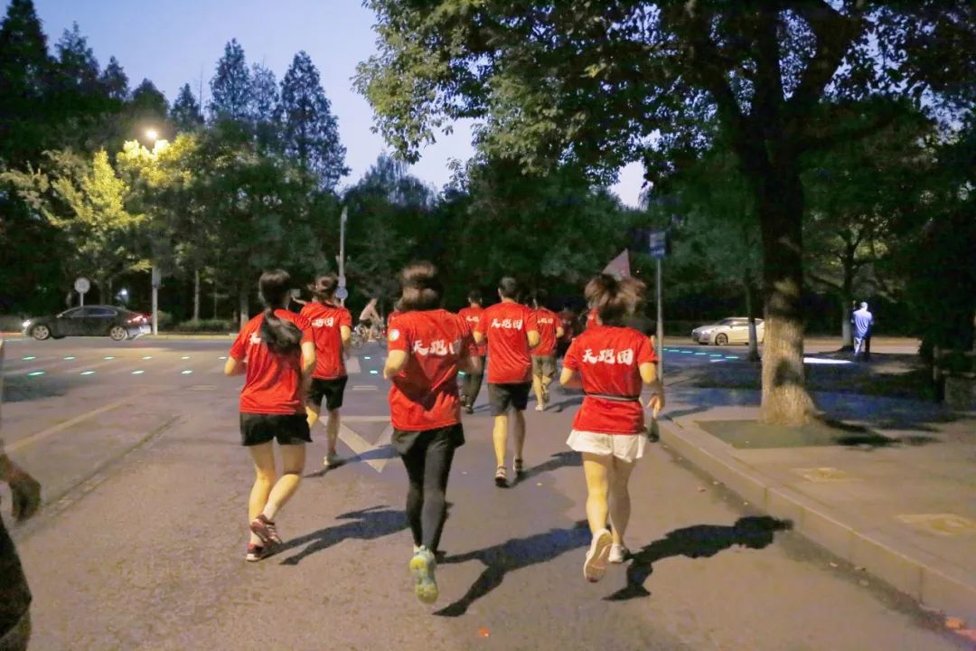 19点整,随着一声哨响,来自各条战线上的天跑团青年员工追风前行,在欢声笑语、昂扬奋进的奔跑中拉开了此次夜跑的序幕。