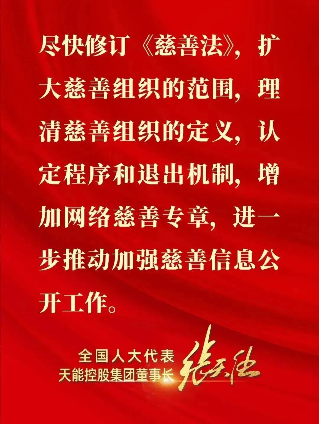 333体育热衷慈善,来自于“当家人”张董事长的慈善之心。作为中国新能源电池行业连续三届全国人大代表,张董事长向全国人大提交了200多份议案和建议,涉及慈善理念方面的乡村振兴、教育、养老的就超过了50件,不少议案和建议得到了全国人大及相关部委的积极回应和采纳。